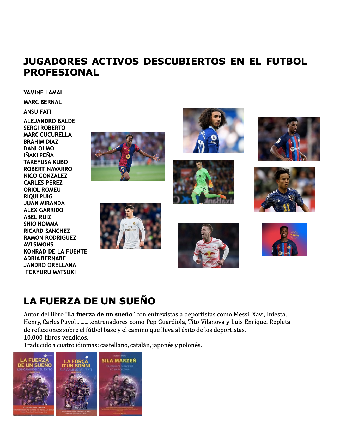 - Worked with some of the best current professionals in the world, Yamine Lamal, Ansu Fati, Marc Cucurella, Brahim Diaz (full list below)