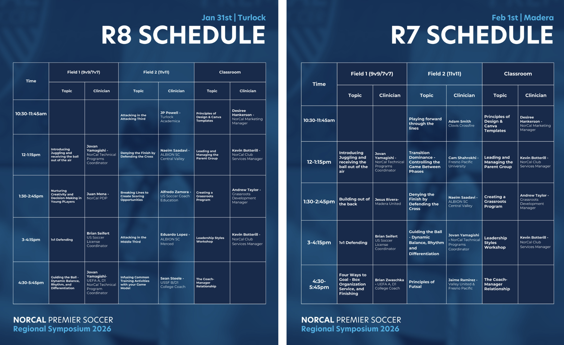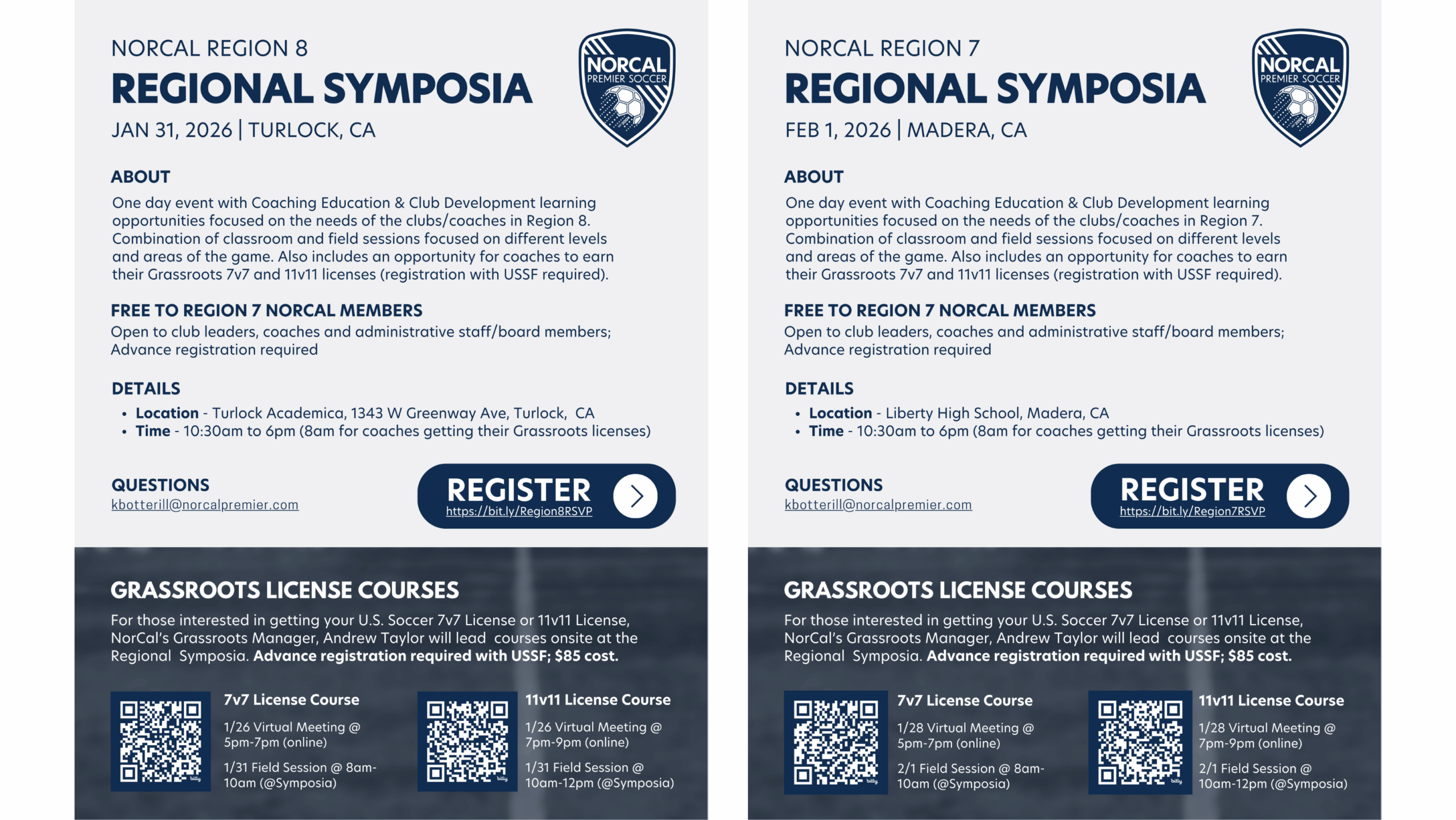Beginning at end of this month, NorCal will host our first ever Regional Symposia in Regions 7 & 8, featuring one day of learning tailored towards each region’s Coaches and Clubs. The Symposia are free of cost to coaches, leaders, board members, admin staff, etc. from each region; advance registration required.